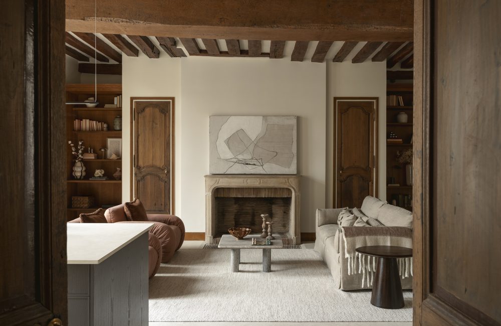 En die mythe reikt verder dan vergulde spiegels en kroonluchters, en leeft vooral in subtiele details die een pand karakter verlenen. “De Parijse stijl draait niet om versiering, maar om materialen. Dáár schuilen echte allure en elegantie.” Hier, in deze woning, leeft de ziel van Le Marais verder in de zichtbare balken, natuursteen, pure texturen en zorgvuldig geselecteerde antieke stukken. Een sfeervolle wisselwerking tussen verleden en heden, in lijn met de geest van de buurt. Het resultaat is een tijdloze plek met respect voor de oorspronkelijke architectuur die naadloos aansluit bij het moderne leven.
